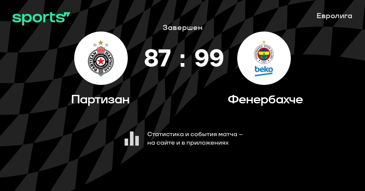 В прошедшем матче в рамках турнира Евролига состоялась встреча команд Партизан - Фенербахче в городе Белград (Сербия) на стадионе Белград Арена (вместимость - 22386)