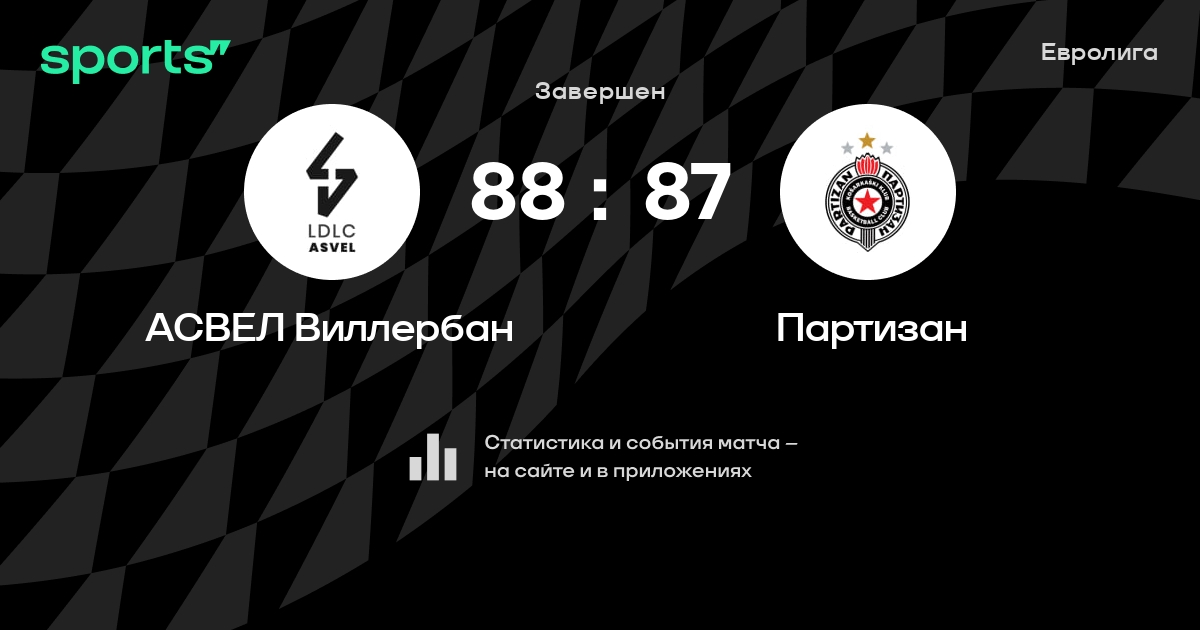 В прошедшем матче в рамках турнира Евролига состоялась встреча команд АСВЕЛ Виллербан - Партизан в городе Виллербанн (Франция) на стадионе Астробаль (вместимость - 5556)