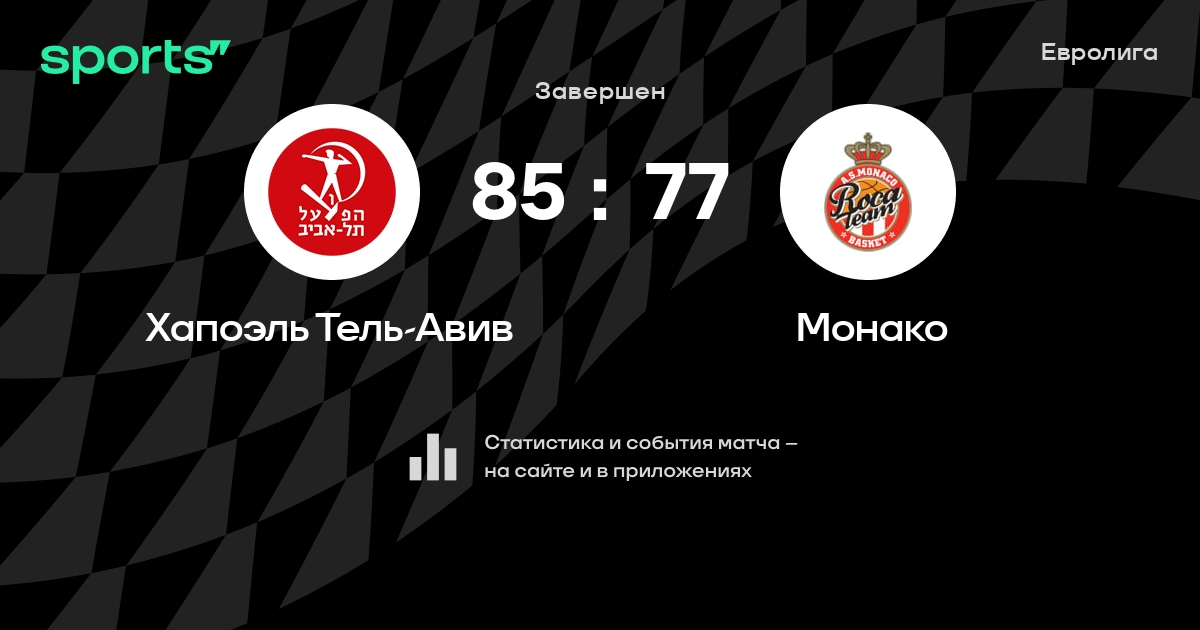 В прошедшем матче в рамках турнира Евролига состоялась встреча команд Хапоэль Тель-Авив - Монако в городе на стадионе Arena 8888 Sofia со счетом 85 : 77.