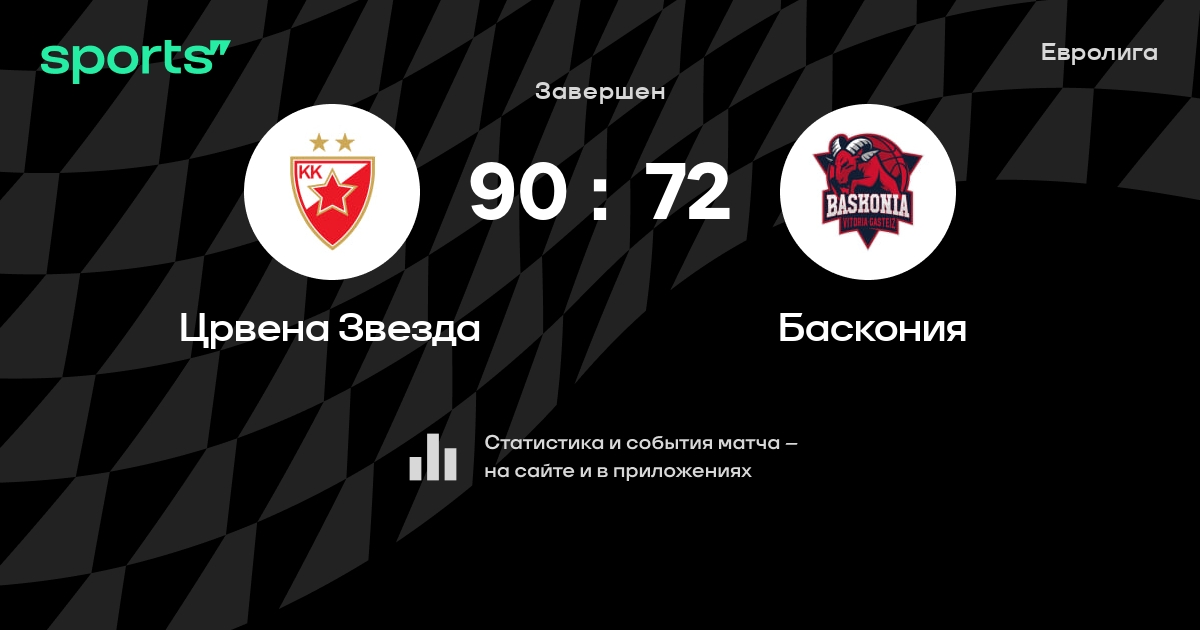 В прошедшем матче в рамках турнира Евролига состоялась встреча команд Црвена Звезда - Баскония в городе Белград (Сербия) на стадионе Белград Арена (вместимость - 22386)