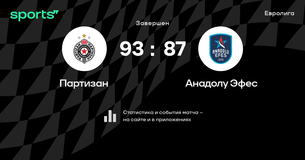 Как прошел матч, смотрите в текстовой трансляции Партизан - Анадолу Эфес на Sports.ru