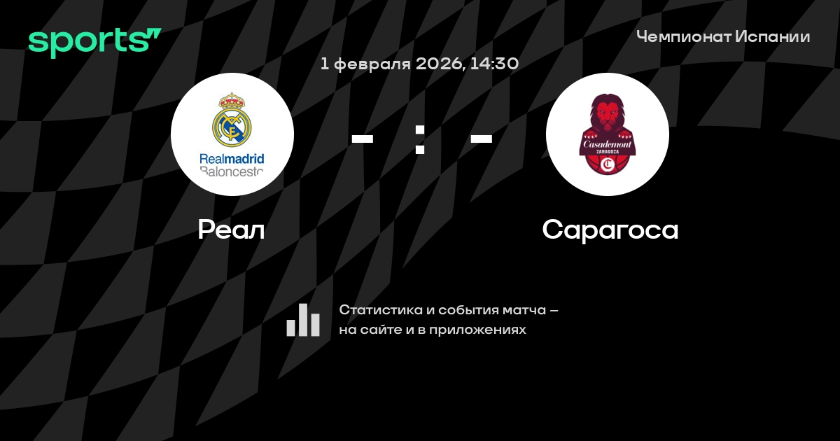 В предстоящем матче в рамках турнира Чемпионат Испании пройдет встреча команд Реал - Сарагоса .