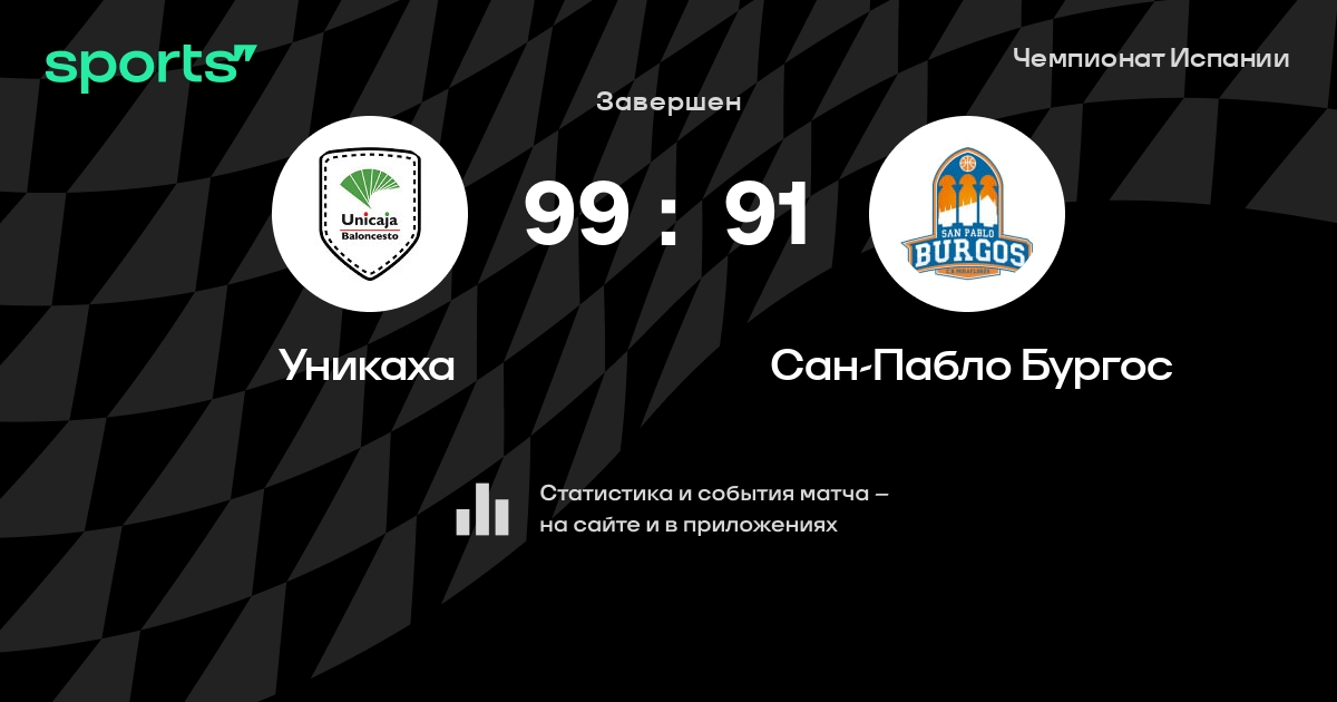 В прошедшем матче в рамках турнира Чемпионат Испании состоялась встреча команд Уникаха - Сан-Пабло Бургос в городе Малага (Испания) на стадионе Паласио де Депортес де Малага (вместимость - 10500)