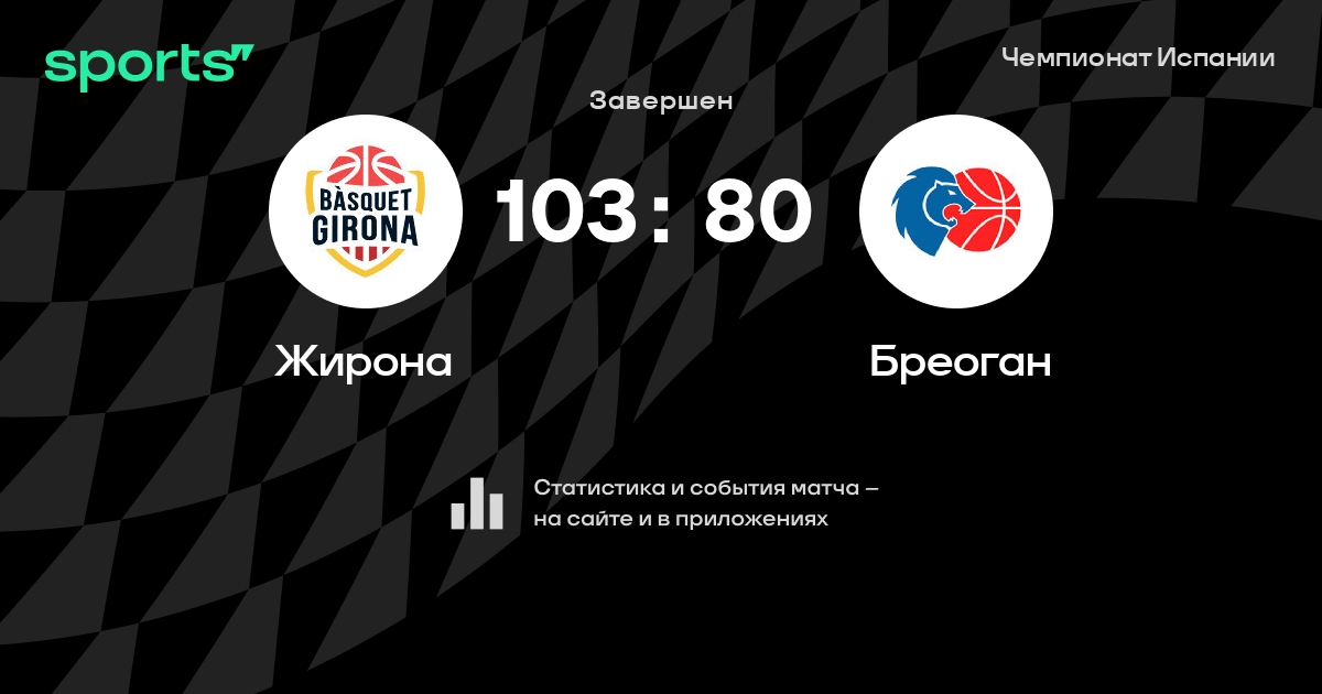 В прошедшем матче в рамках турнира Чемпионат Испании состоялась встреча команд Жирона - Бреоган в городе на стадионе Pavelló Municipal d'Esports Girona-Fontajau
