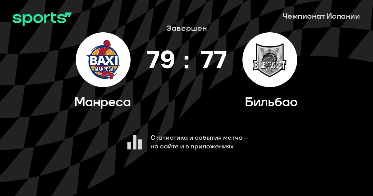 В прошедшем матче в рамках турнира Чемпионат Испании состоялась встреча команд Манреса - Бильбао в городе Manresa на стадионе Pavelló Nou Congost со счетом 79 : 77.