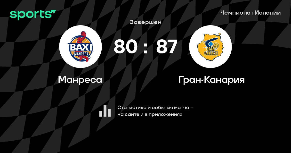 В прошедшем матче в рамках турнира Чемпионат Испании состоялась встреча команд Манреса - Гран-Канария в городе Manresa на стадионе Pavelló Nou Congost