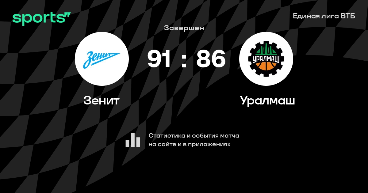 В прошедшем матче в рамках турнира Единая лига ВТБ состоялась встреча команд Зенит - Уралмаш в городе Санкт-Петербург (Россия) на стадионе КСК Арена (вместимость - 7120)
