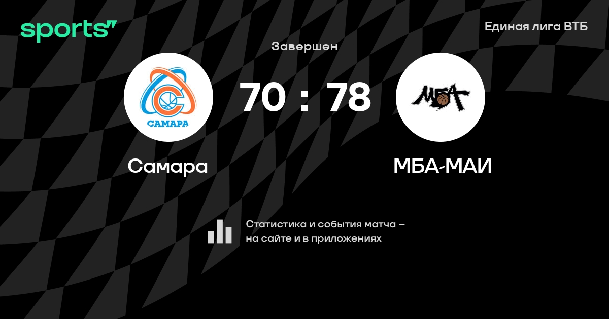 В прошедшем матче в рамках турнира Единая лига ВТБ состоялась встреча команд Самара - МБА-МАИ в городе Самара (Россия) на стадионе Дворец спорта со счетом 70 : 78.
