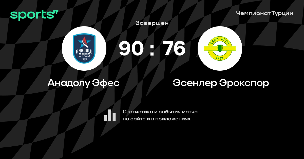В прошедшем матче в рамках турнира Чемпионат Турции состоялась встреча команд Анадолу Эфес - Эсенлер Эрокспор в городе Стамбул (Турция) на стадионе Центр развития баскетбола (вместимость - 10000)