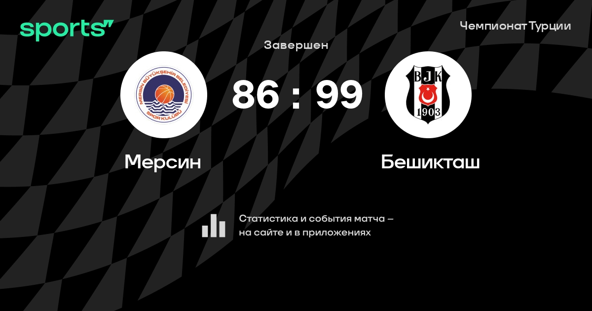 В прошедшем матче в рамках турнира Чемпионат Турции состоялась встреча команд Мерсин - Бешикташ в городе на стадионе Servet Tazegül Spor Salonu со счетом 86 : 99.