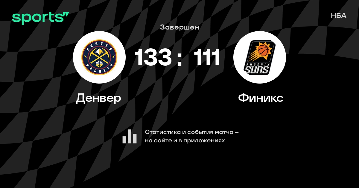 В прошедшем матче в рамках турнира НБА состоялась встреча команд Денвер - Финикс в городе Денвер (США) на стадионе Ball Arena (вместимость - 18007) со счетом 133 : 111.