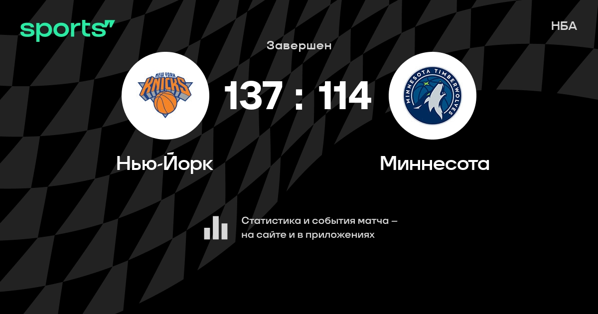 В прошедшем матче в рамках турнира НБА состоялась встреча команд Нью-Йорк - Миннесота в городе Нью-Йорк (США) на стадионе Madison Square Garden (вместимость - 19763)