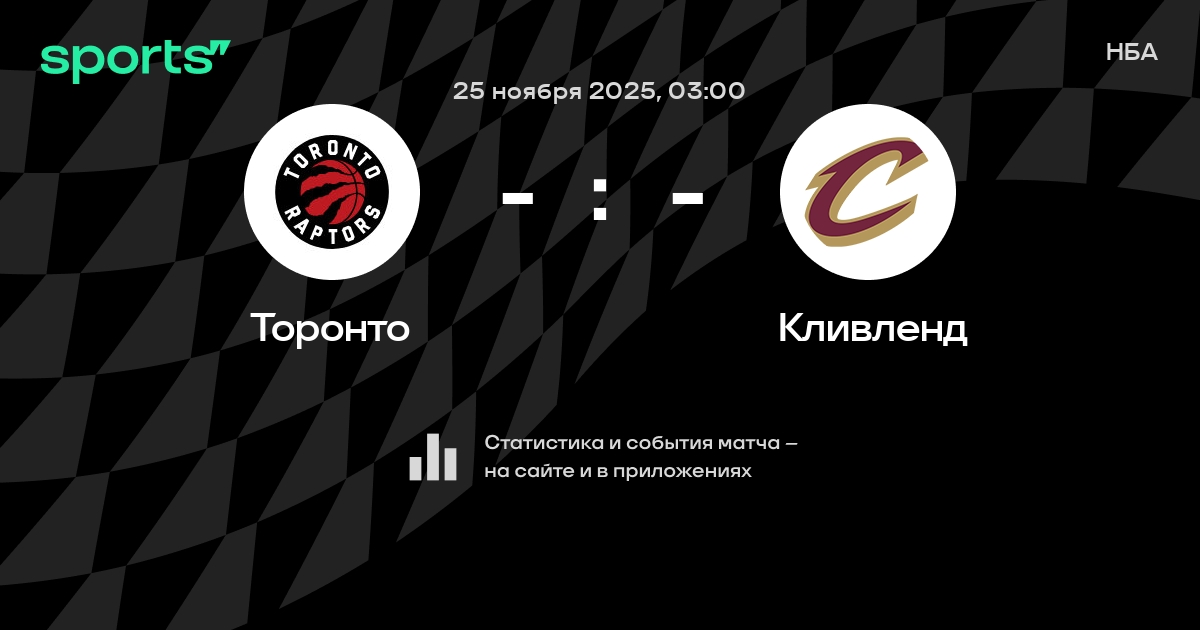 В предстоящем матче в рамках турнира НБА пройдет встреча команд Торонто - Кливленд . Начало встречи запланировано на 03:00 25 ноября 2025.