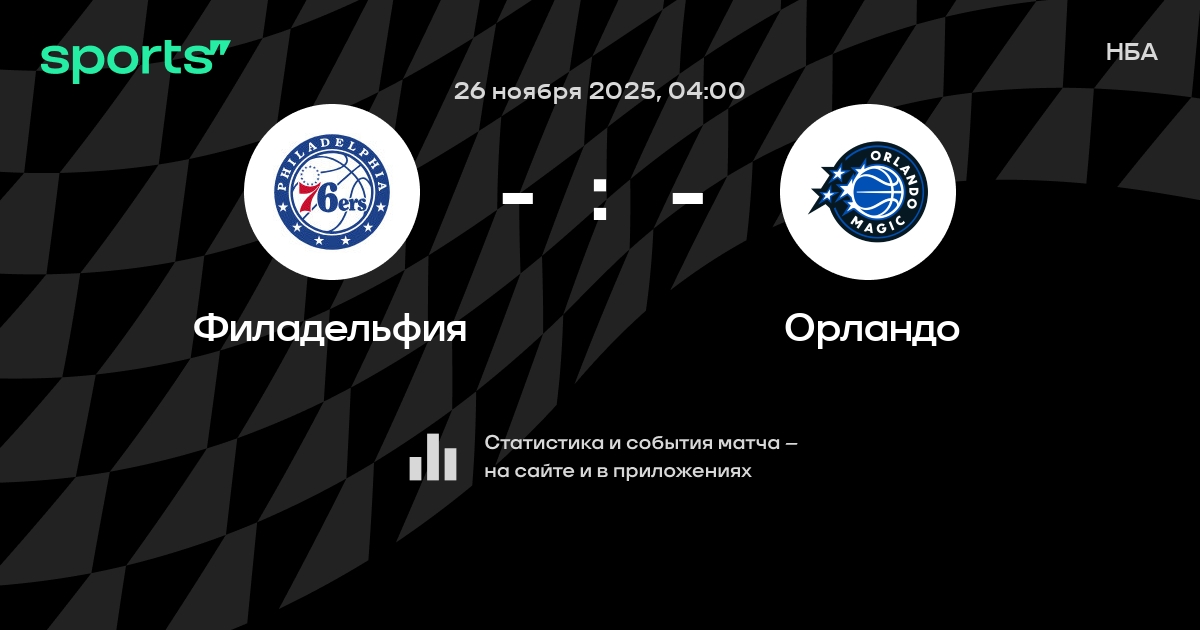 В предстоящем матче в рамках турнира НБА пройдет встреча команд Филадельфия - Орландо . Начало встречи запланировано на 04:00 26 ноября 2025.