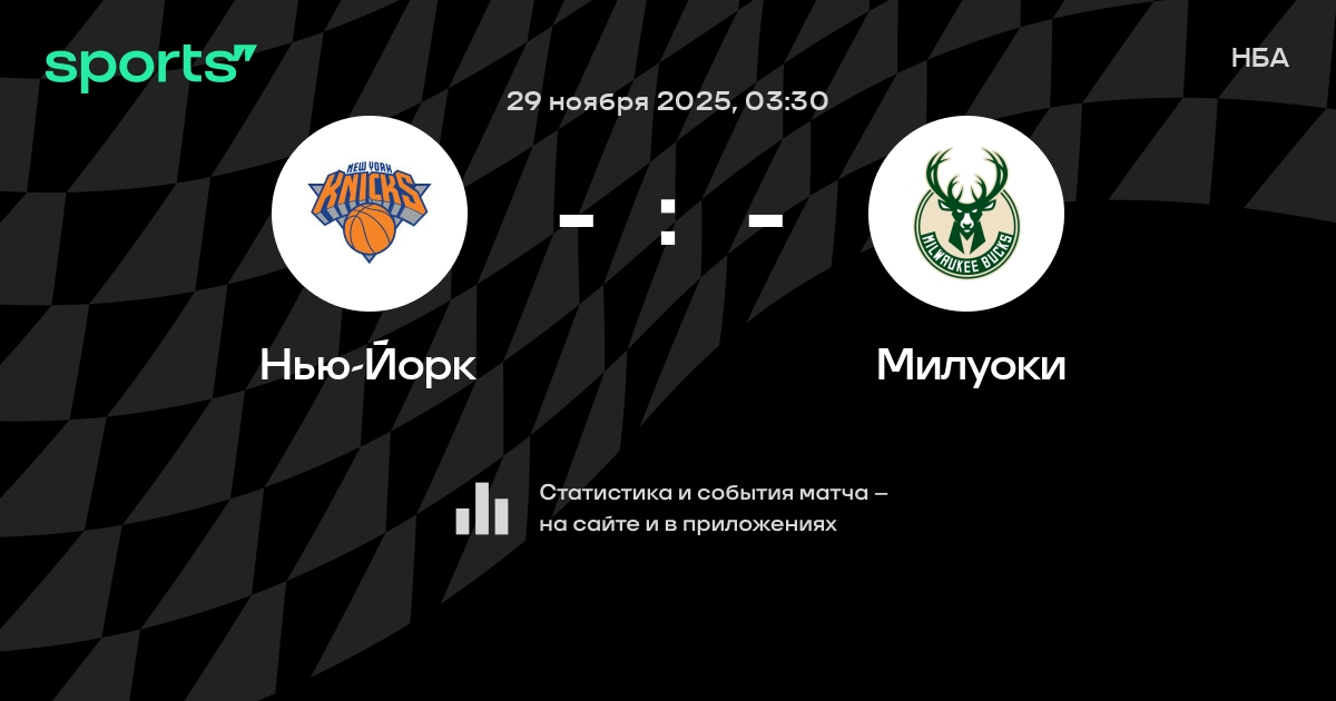 В предстоящем матче в рамках турнира НБА пройдет встреча команд Нью-Йорк - Милуоки . Начало встречи запланировано на 03:30 29 ноября 2025.