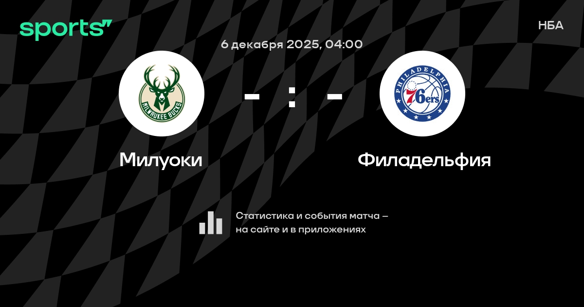 В предстоящем матче в рамках турнира НБА пройдет встреча команд Милуоки - Филадельфия . Начало встречи запланировано на 04:00 6 декабря 2025.