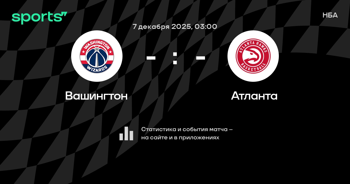В предстоящем матче в рамках турнира НБА пройдет встреча команд Вашингтон - Атланта . Начало встречи запланировано на 03:00 7 декабря 2025.