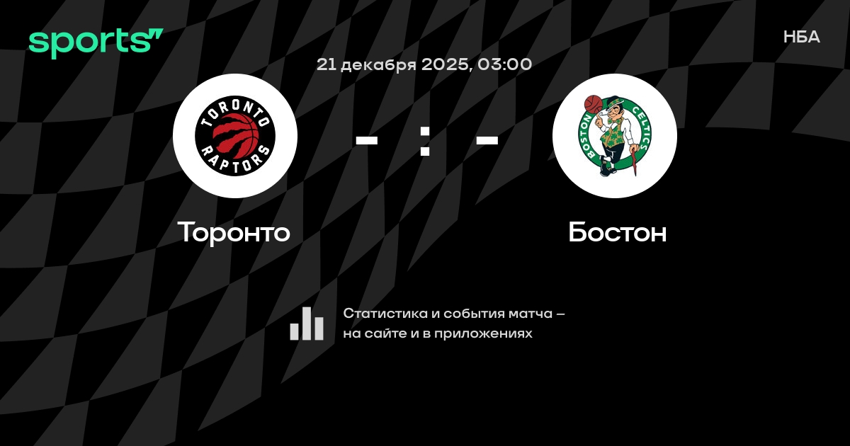 В предстоящем матче в рамках турнира НБА пройдет встреча команд Торонто - Бостон . Начало встречи запланировано на 03:00 21 декабря 2025.
