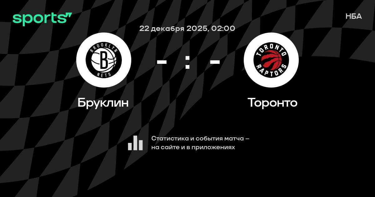В предстоящем матче в рамках турнира НБА пройдет встреча команд Бруклин - Торонто . Начало встречи запланировано на 02:00 22 декабря 2025.