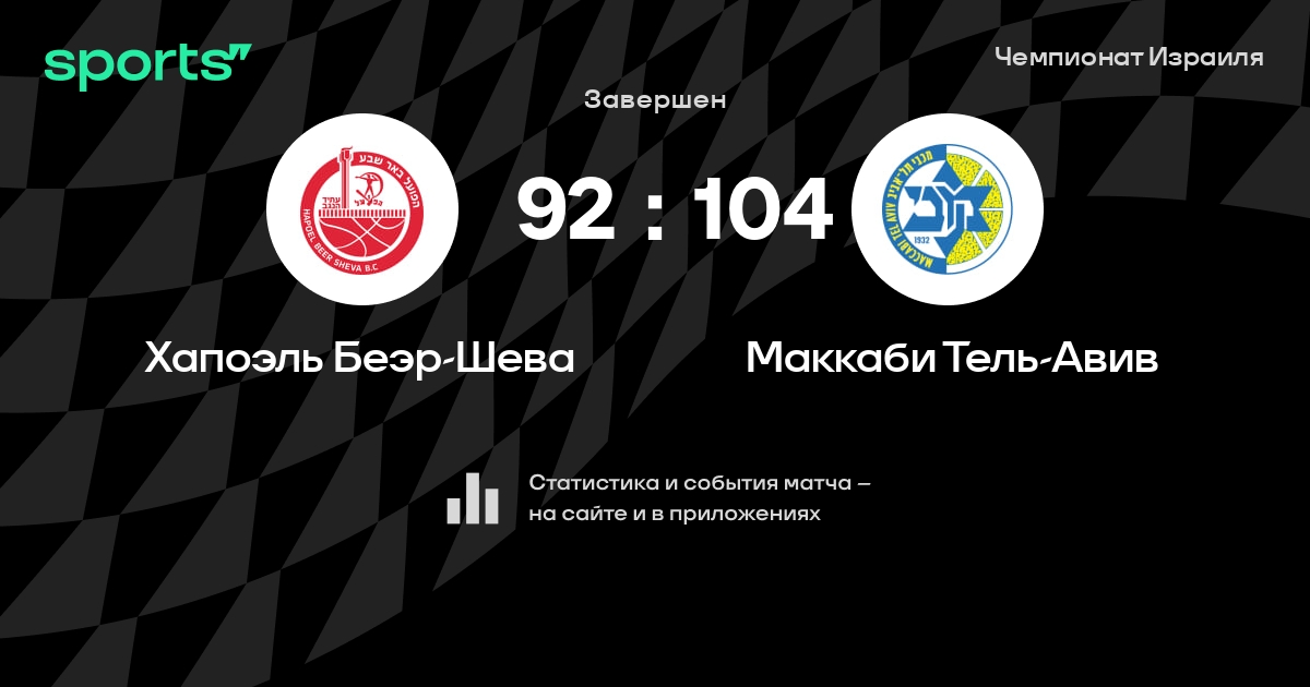 В прошедшем матче в рамках турнира Чемпионат Израиля состоялась встреча команд Хапоэль Беэр-Шева - Маккаби Тель-Авив в городе Be'er Sheva на стадионе Conch Arena
