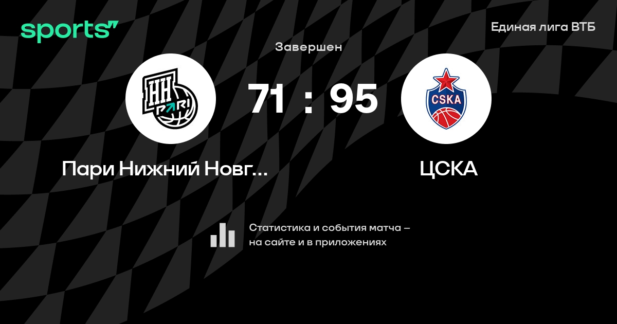 В прошедшем матче в рамках турнира Единая лига ВТБ состоялась встреча команд Пари Нижний Новгород - ЦСКА в городе Нижний Новгород (Россия) на стадионе КРК Нагорный (вместимость - 5600)