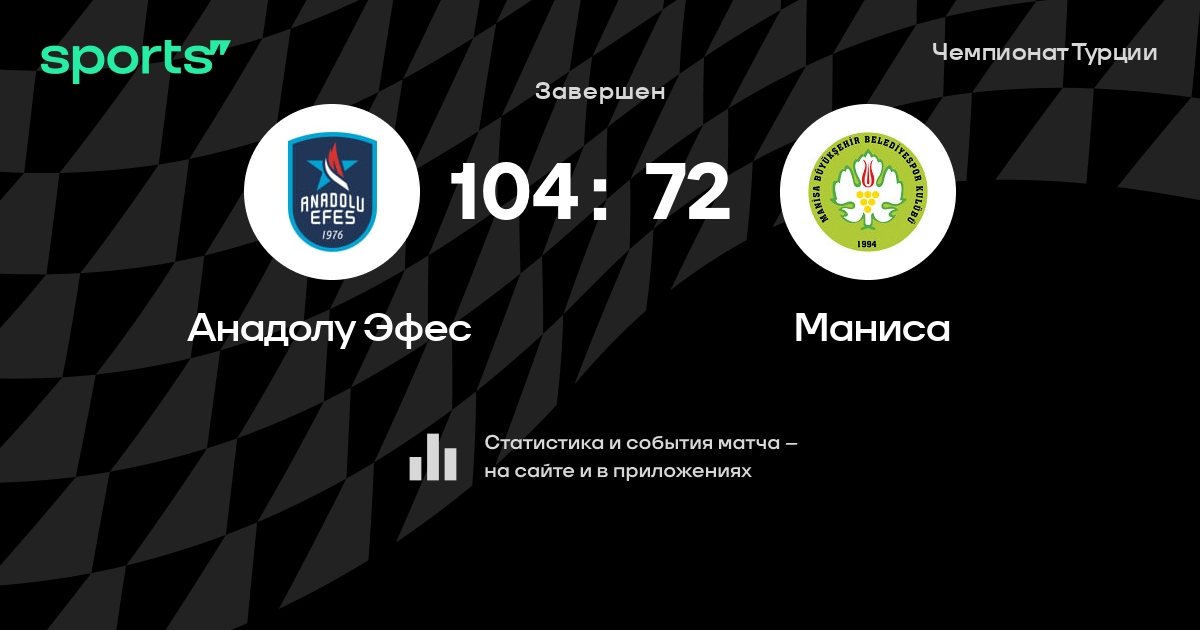 В прошедшем матче в рамках турнира Чемпионат Турции состоялась встреча команд Анадолу Эфес - Маниса в городе Стамбул (Турция) на стадионе Центр развития баскетбола (вместимость - 10000)