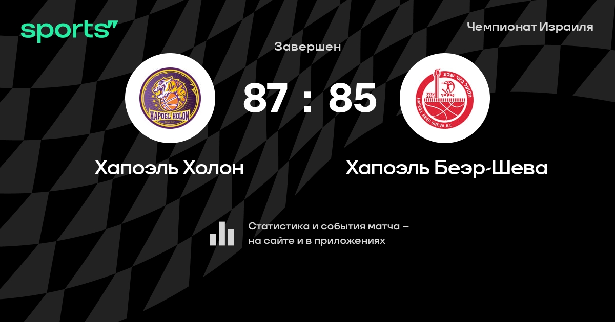 В прошедшем матче в рамках турнира Чемпионат Израиля состоялась встреча команд Хапоэль Холон - Хапоэль Беэр-Шева в городе на стадионе Holon Toto Hall