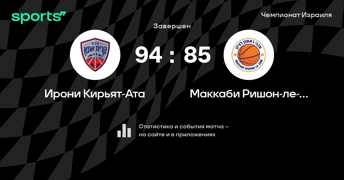 В прошедшем матче в рамках турнира Чемпионат Израиля состоялась встреча команд Ирони Кирьят-Ата - Маккаби Ришон-ле-Цион в городе Gan Ner на стадионе Gan Ner Sports Hall