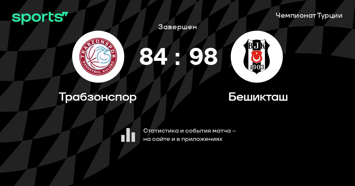 В прошедшем матче в рамках турнира Чемпионат Турции состоялась встреча команд Трабзонспор - Бешикташ в городе на стадионе Hayri Gür Spor Salonu со счетом 84 : 98.