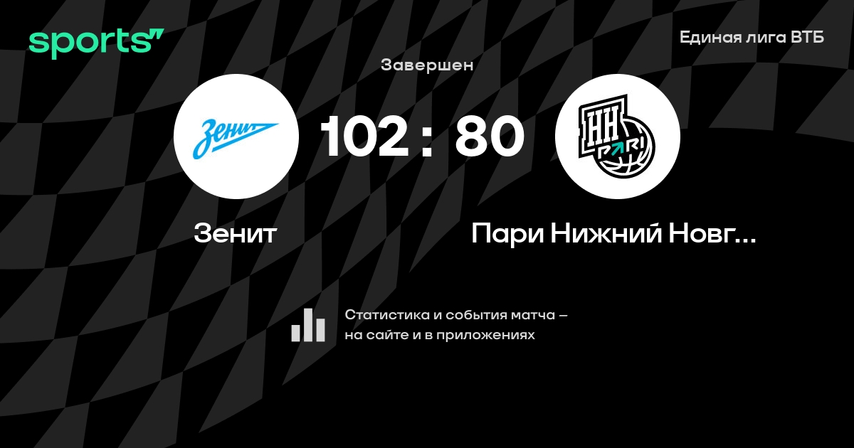 В прошедшем матче в рамках турнира Единая лига ВТБ состоялась встреча команд Зенит - Пари Нижний Новгород в городе Санкт-Петербург (Россия) на стадионе КСК Арена (вместимость - 7120)