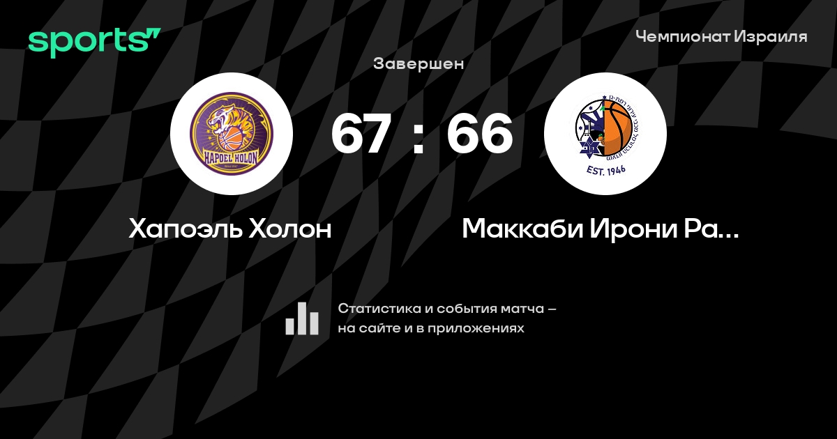 В прошедшем матче в рамках турнира Чемпионат Израиля состоялась встреча команд Хапоэль Холон - Маккаби Ирони Рамат-Ган в городе на стадионе Holon Toto Hall