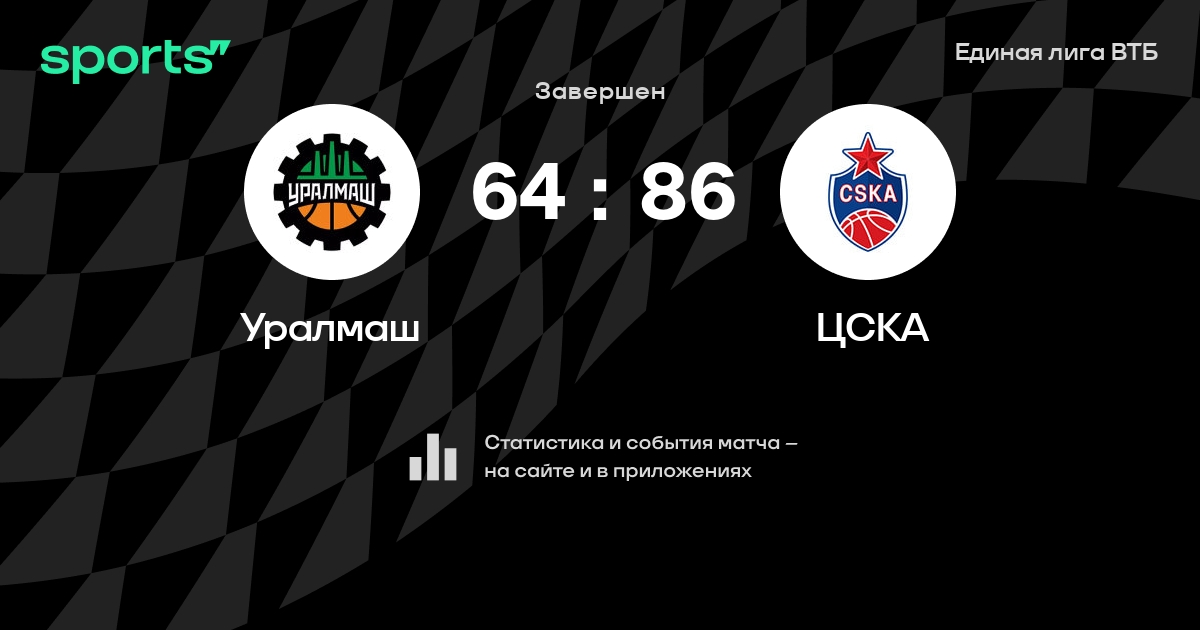В прошедшем матче в рамках турнира Единая лига ВТБ состоялась встреча команд Уралмаш - ЦСКА в городе Екатеринбург (Россия) на стадионе ДИВС со счетом 64 : 86.