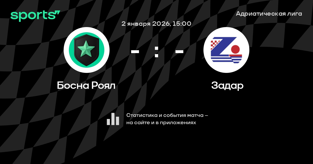 В предстоящем матче в рамках турнира Адриатическая лига пройдет встреча команд Босна Роял - Задар .