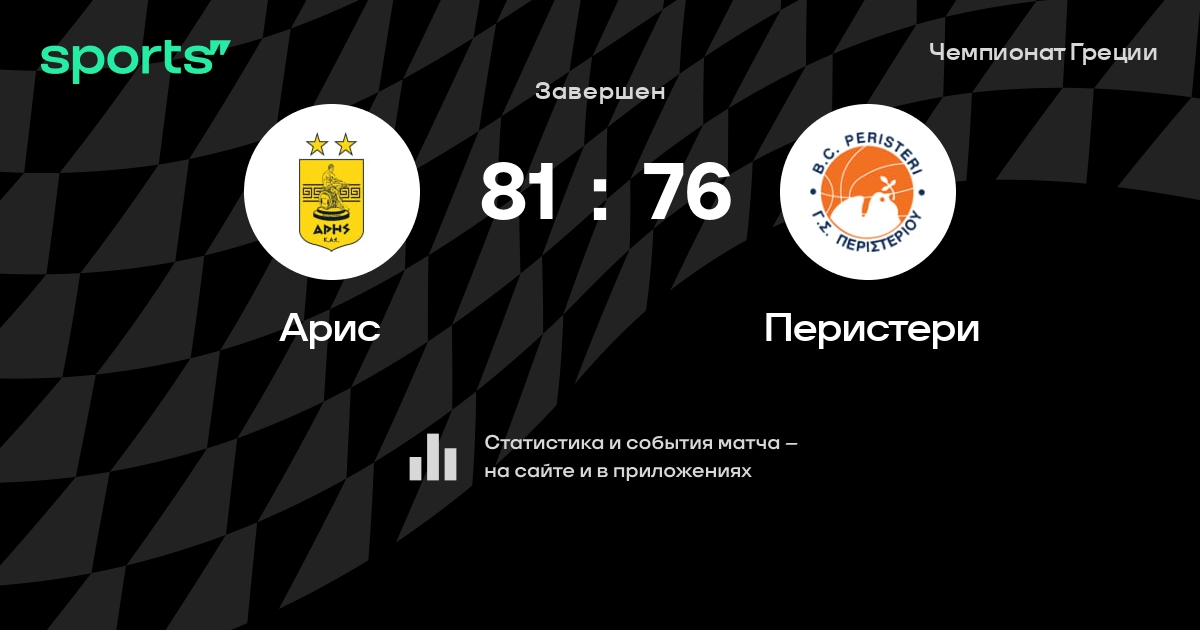 В прошедшем матче в рамках турнира Чемпионат Греции состоялась встреча команд Арис - Перистери в городе на стадионе Sala Alexandreio Melathron Nikos Galis