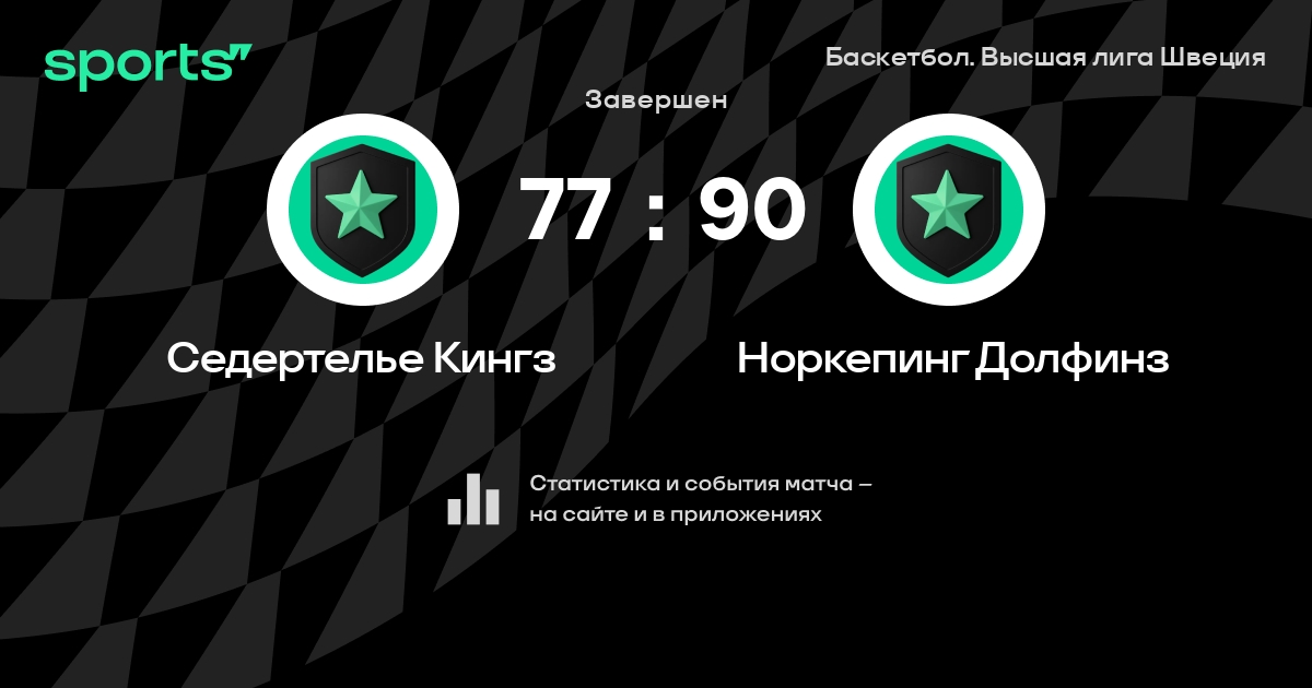 В прошедшем матче в рамках турнира Баскетбол. Высшая лига Швеция состоялась встреча команд Седертелье Кингз - Норкепинг Долфинз со счетом 77 : 90.