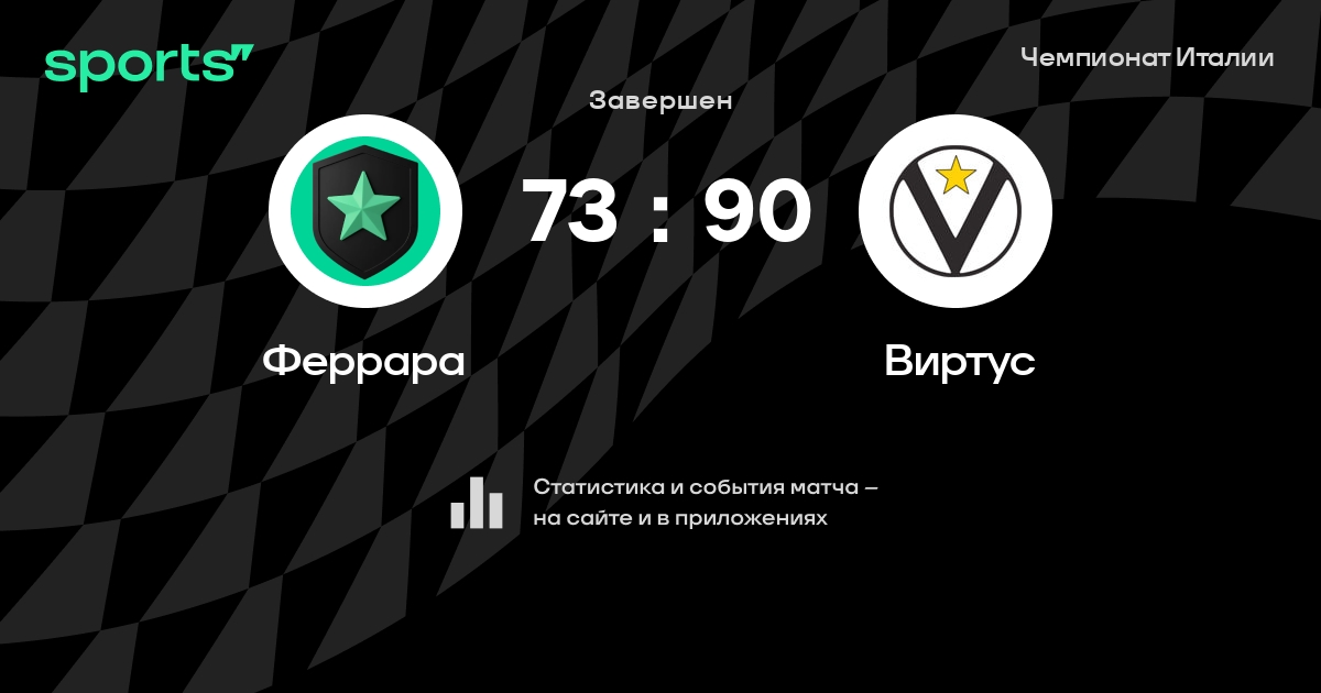 В прошедшем матче в рамках турнира Чемпионат Италии состоялась встреча команд Феррара - Виртус со счетом 73 : 90.
