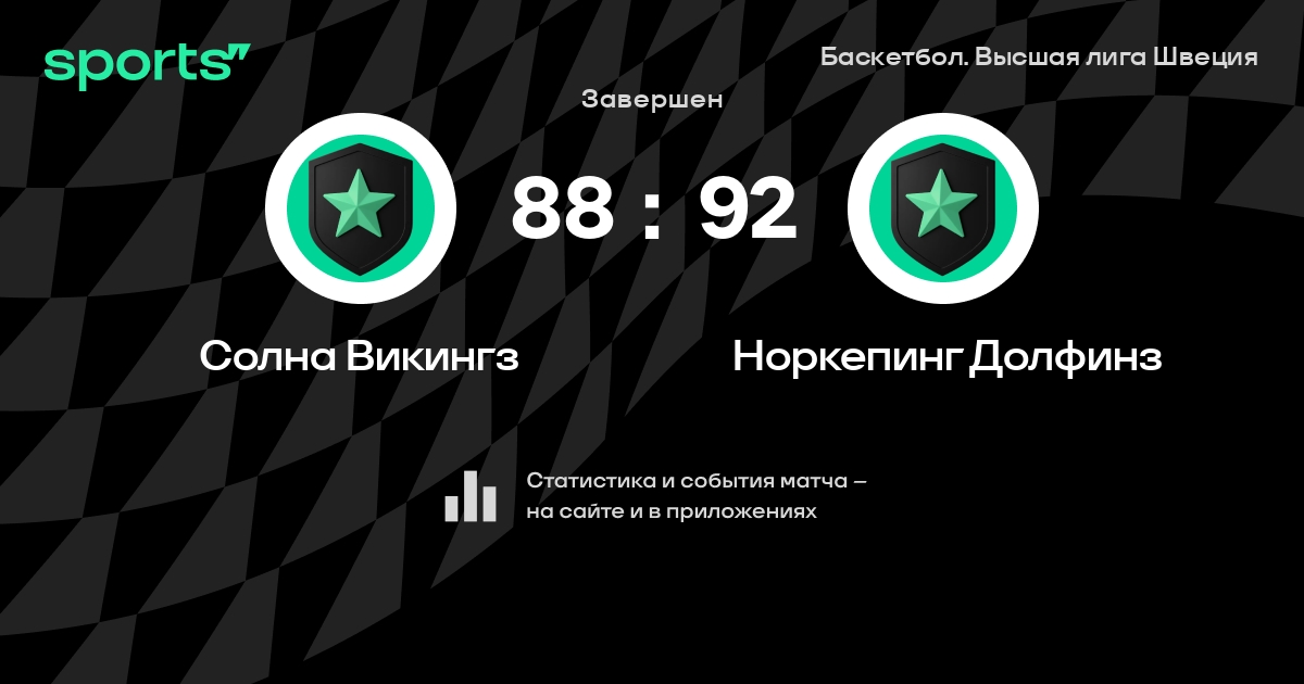 В прошедшем матче в рамках турнира Баскетбол. Высшая лига Швеция состоялась встреча команд Солна Викингз - Норкепинг Долфинз со счетом 88 : 92.