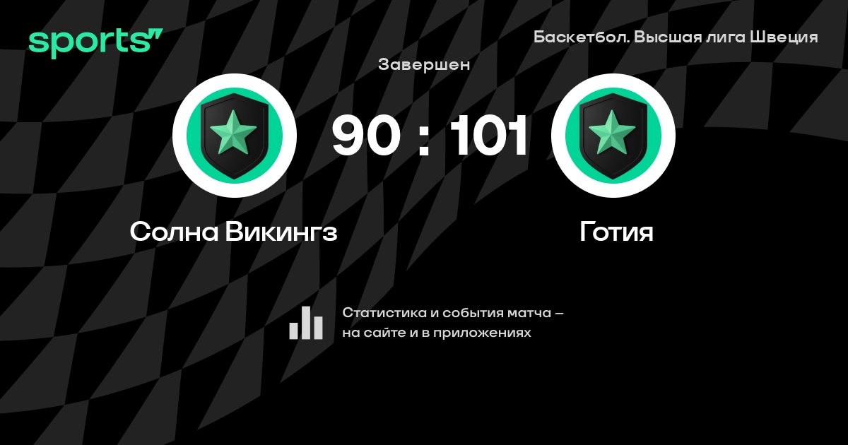 В прошедшем матче в рамках турнира Баскетбол. Высшая лига Швеция состоялась встреча команд Солна Викингз - Готия со счетом 90 : 101.