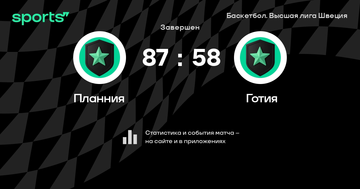 В прошедшем матче в рамках турнира Баскетбол. Высшая лига Швеция состоялась встреча команд Планния - Готия со счетом 87 : 58.