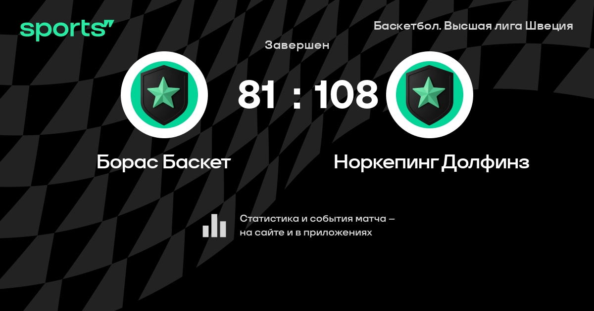 В прошедшем матче в рамках турнира Баскетбол. Высшая лига Швеция состоялась встреча команд Борас Баскет - Норкепинг Долфинз со счетом 81 : 108.