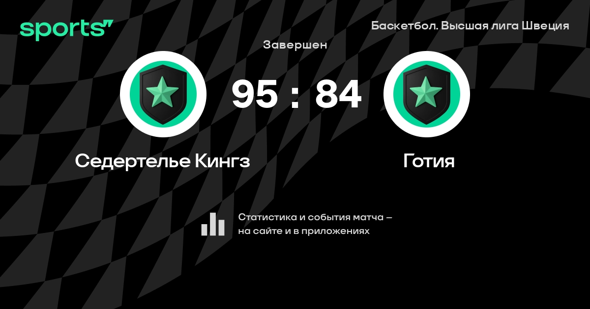 В прошедшем матче в рамках турнира Баскетбол. Высшая лига Швеция состоялась встреча команд Седертелье Кингз - Готия со счетом 95 : 84.