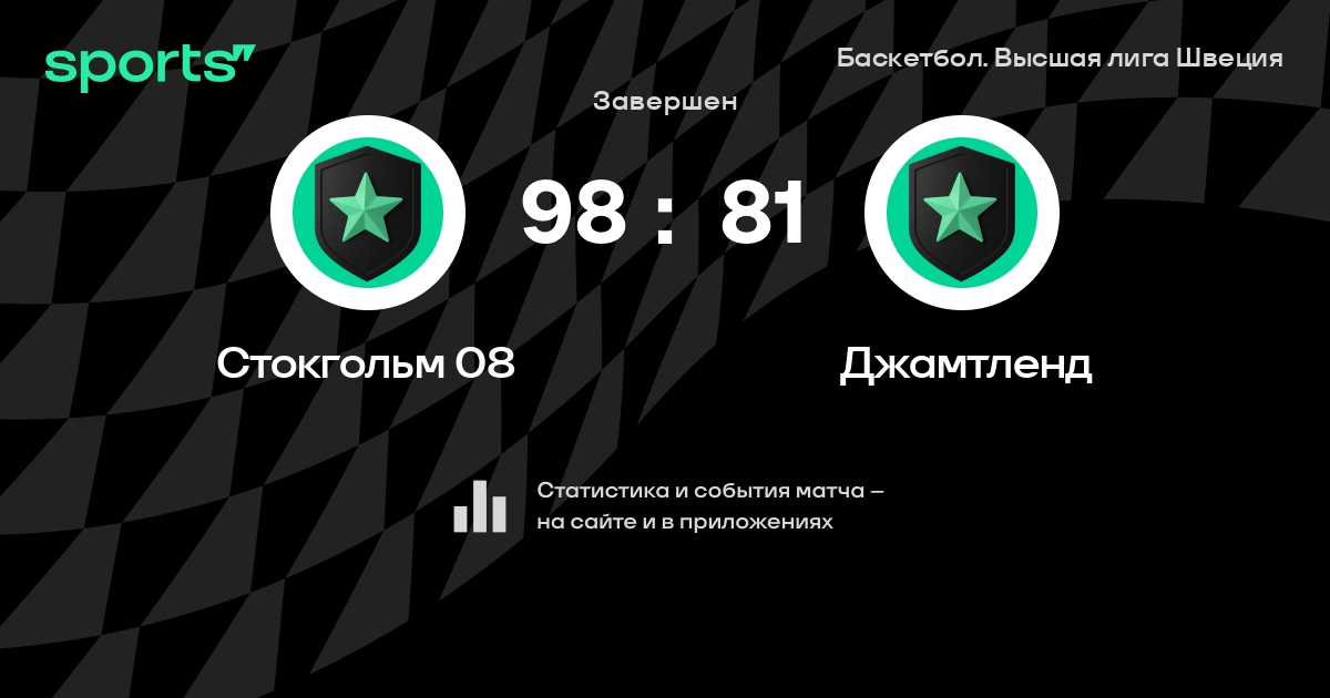 В прошедшем матче в рамках турнира Баскетбол. Высшая лига Швеция состоялась встреча команд Стокгольм 08 - Джамтленд со счетом 98 : 81.