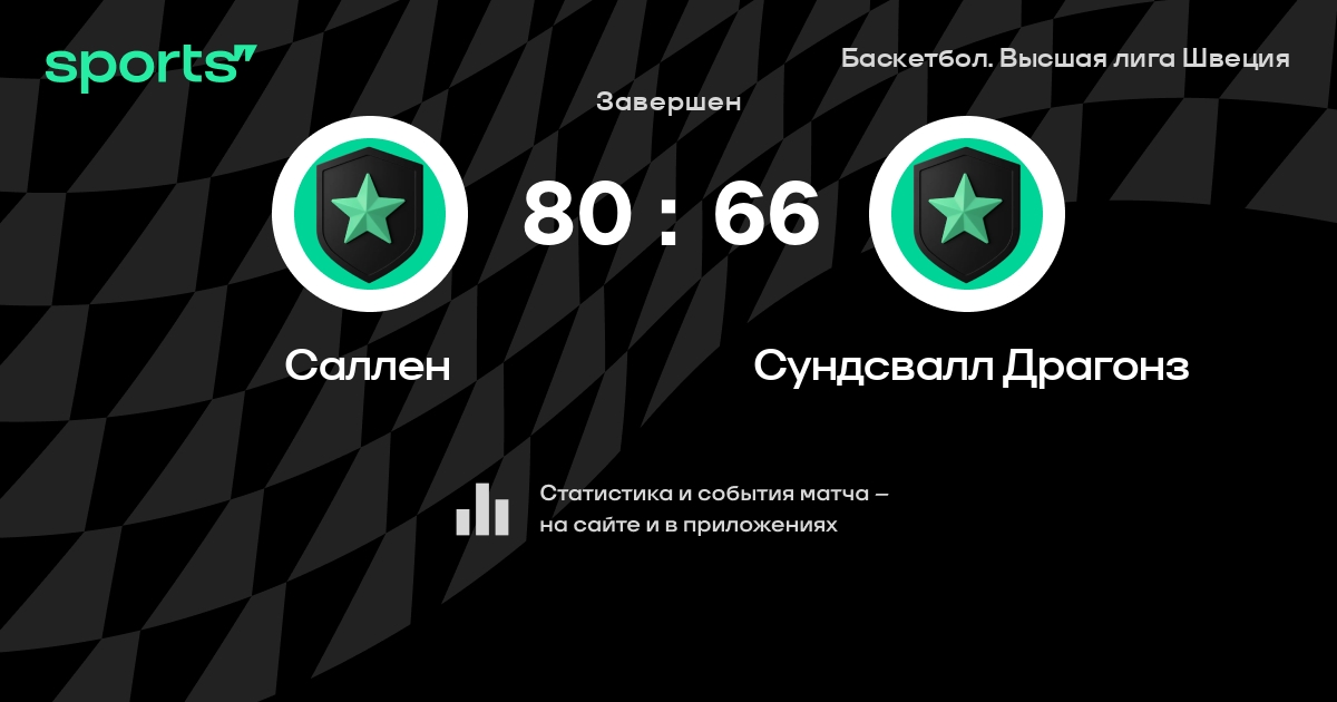 В прошедшем матче в рамках турнира Баскетбол. Высшая лига Швеция состоялась встреча команд Саллен - Сундсвалл Драгонз со счетом 80 : 66.