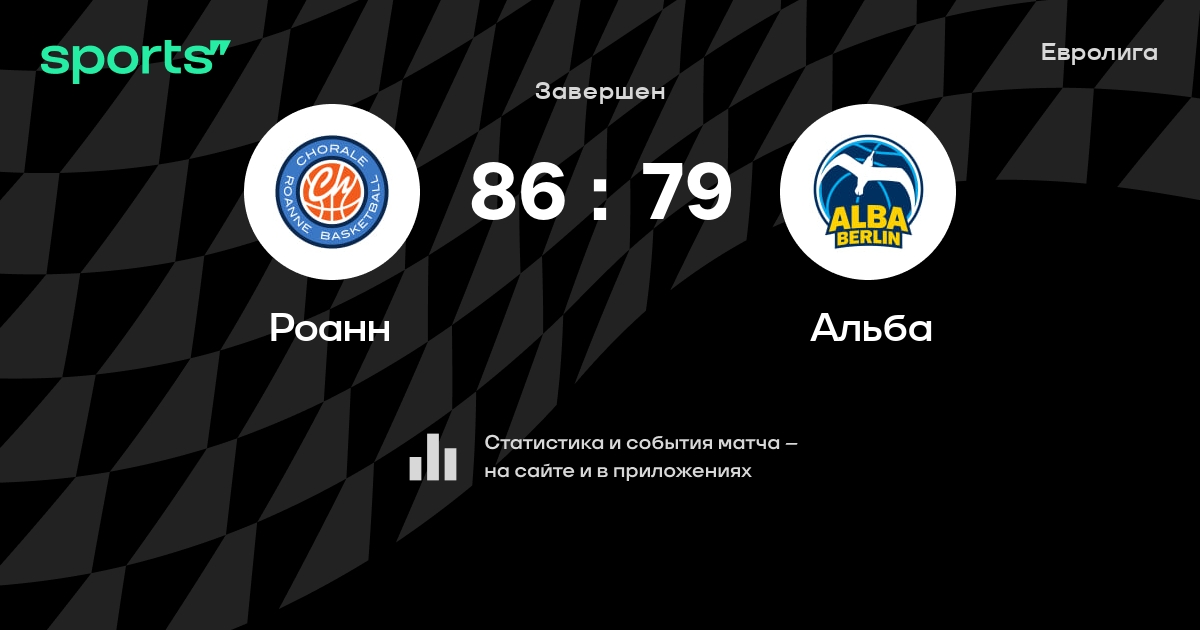 В прошедшем матче в рамках турнира Евролига состоялась встреча команд Роанн - Альба со счетом 86 : 79.