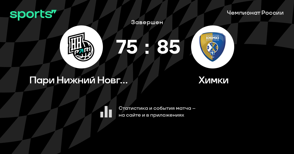 В прошедшем матче в рамках турнира Чемпионат России неделя 3 состоялась встреча команд Пари Нижний Новгород - Химки со счетом 75 : 85.