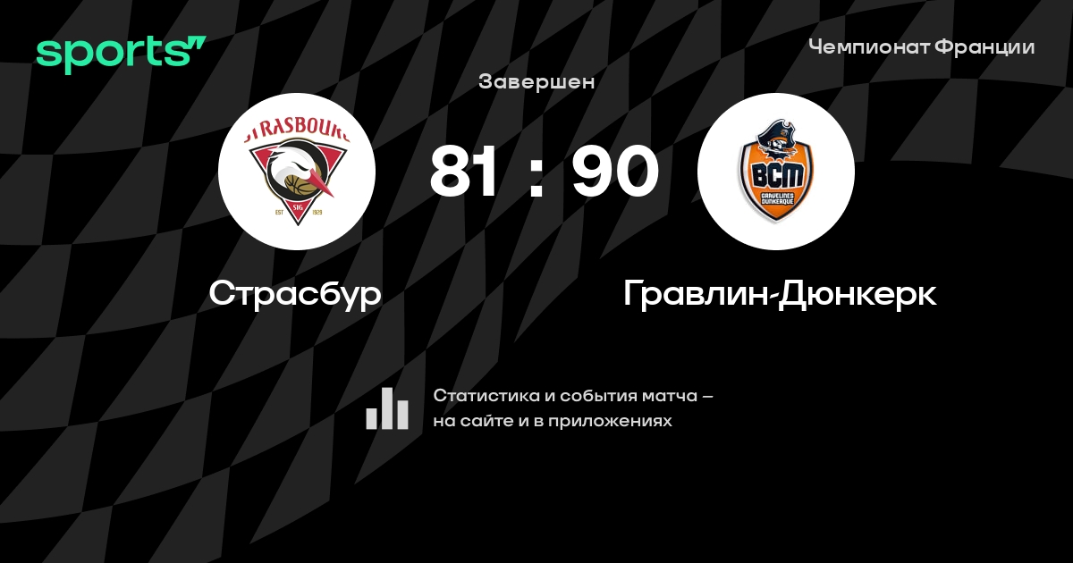 В прошедшем матче в рамках турнира Чемпионат Франции состоялась встреча команд Страсбур - Гравлин-Дюнкерк со счетом 81 : 90.