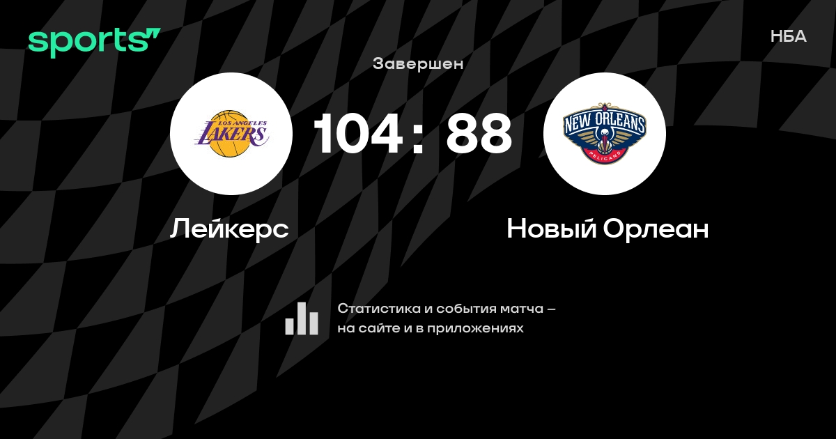 В прошедшем матче в рамках турнира НБА состоялась встреча команд Лейкерс - Новый Орлеан со счетом 104 : 88.