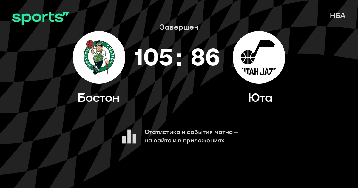 В прошедшем матче в рамках турнира НБА состоялась встреча команд Бостон - Юта со счетом 105 : 86.