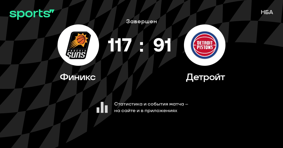 В прошедшем матче в рамках турнира НБА состоялась встреча команд Финикс - Детройт со счетом 117 : 91.