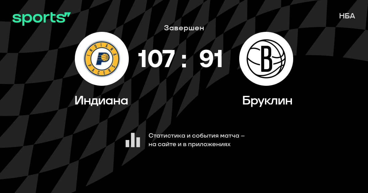 В прошедшем матче в рамках турнира НБА состоялась встреча команд Индиана - Бруклин со счетом 107 : 91.